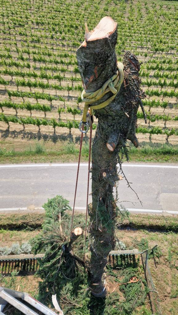 Disponiamo di mezzi moderni per raggiungere le vette più elevate in totale stabilità. Questo ci consente di intervenire rapidamente anche su fusti compromessi o instabili dove l’arrampicata non è sicura.
